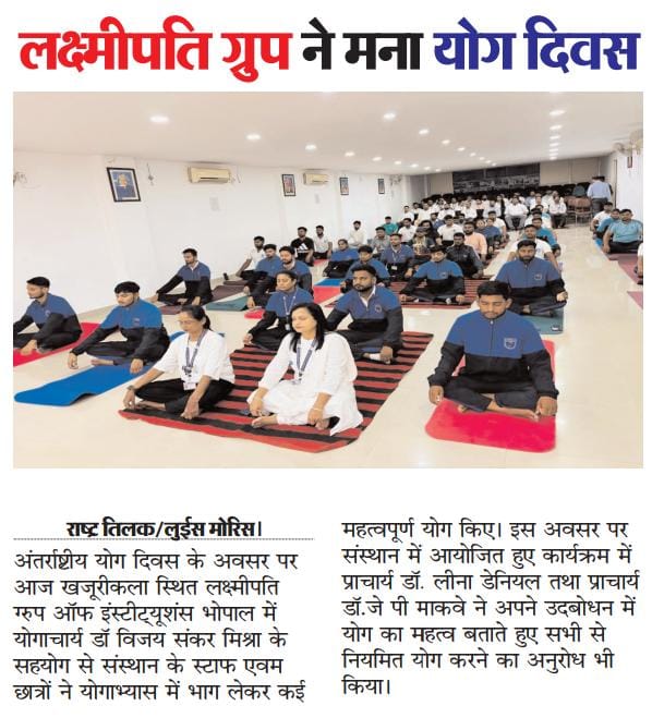 Laxmipati Group of Institutions, Bhopal celebrated International Yoga Day with great enthusiasm, bringing together students, faculty, and staff to promote physical fitness, mental well-being, and mindfulness.